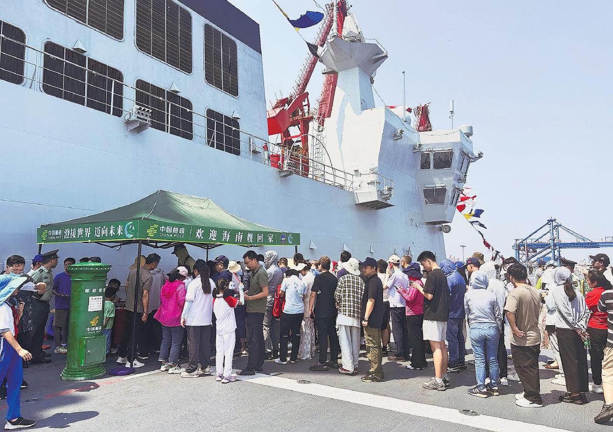 在人民海軍成立76周年之際,入列4年的海南艦回到“家鄉”,于海南省澄邁縣馬村散貨碼頭穩穩靠港。4月24日至26日,海南艦面向公眾開放。澄邁縣郵政分公司抓住機遇,積極開展雙擁共建工作,主動參與艦艇開放日活動,宣傳海軍建設成就。