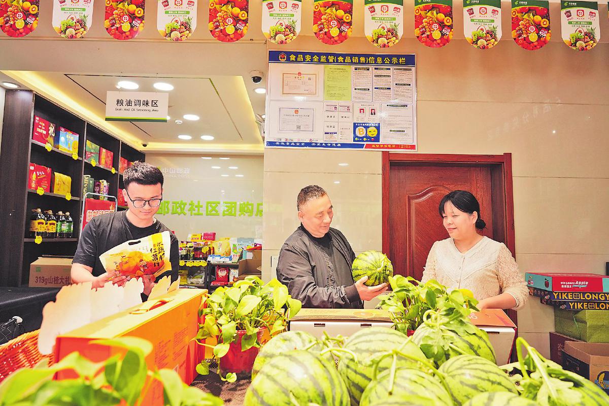 走進商丘市睢陽區工貿路的郵政便民超市,貨架上整齊碼放著帶有“郵政農品”標志的面粉、小碗燉梨等農產品,到店的市民對這些郵政商品尤為青睞。“我們是郵政打造的‘社區團購+金融服務’示范站點。自從與郵政合作以來,店里的人氣明顯比以前旺了,平均每月可增加營業收入8000多元,日最高客流量能達到300人次。”超市老板張學偉介紹說。