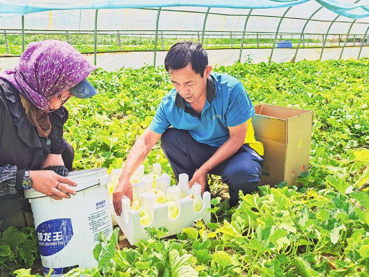 巴彥淖爾市烏拉特前旗攬投員收寄新鮮瓜果。□張騰蛟 攝