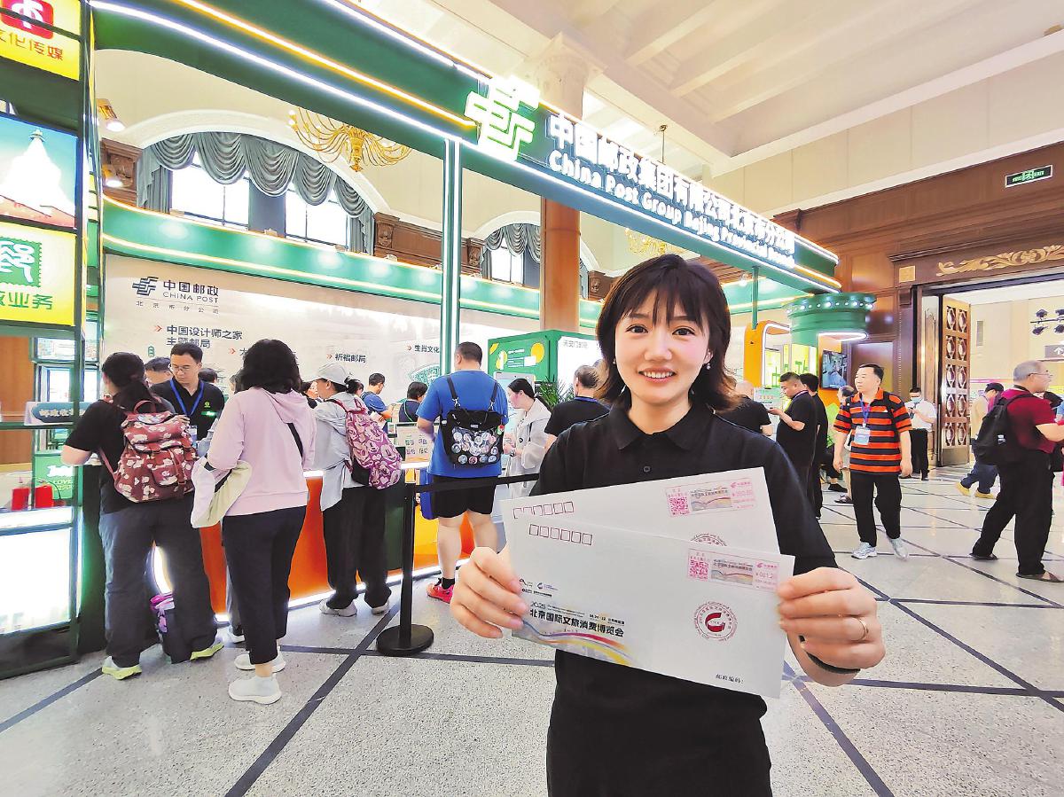 6月20日,2025北京國際文旅消費博覽會在北京展覽館開幕。北京市郵政分公司攜7家特色主題郵局和1家文創體驗店,以“城跡郵路暢享生活”為主題亮相會場,在為期3天的會展期間開展設計師簽售、傳統糕點制作體驗、郵票鑒賞等豐富多彩的活動。北京郵政還設計制作了文旅消費博覽會紀念封以及打印型郵資機戳和紀念戳。琳瑯滿目的特色郵品、沉浸式的文化空間與豐富的互動贈禮,吸引了眾多市民前來打卡。