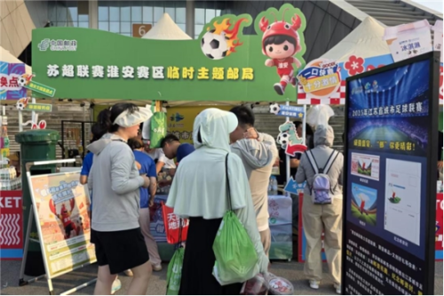 鎖定主場,延伸服務半徑。淮安郵政充分發(fā)揮主場優(yōu)勢,成功爭取多個現(xiàn)場助威名額,在全市范圍內(nèi)策劃開展“郵我來助威,一鉗定勝負”系列主題活動。在郵政網(wǎng)點設立“蘇超助威區(qū)”,為市民提供賽事直播觀看、文創(chuàng)產(chǎn)品領取等沉浸式互動體驗,有效延伸了服務觸角。