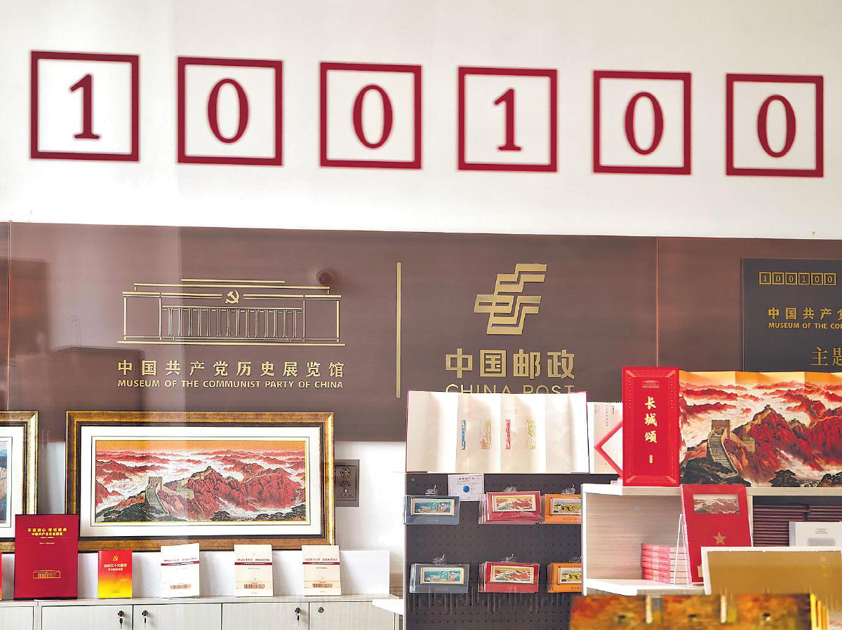 “您在前方看到的是中國共產黨歷史展覽館主題郵局,郵編是100100,象征著展覽館落成于中國共產黨成立100周年之際,激勵大家向著第二個百年奮斗目標勇往直前。”來到中國共產黨歷史展覽館,當跟隨一身紅衣的講解員經過展覽館三層北側的主題郵局時,總會聽到這段精彩的講解。