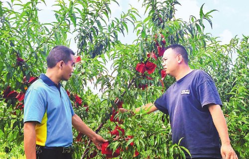 郵政工作人員走訪果農,了解銷售寄遞需求?! 蹂X躍輝 攝