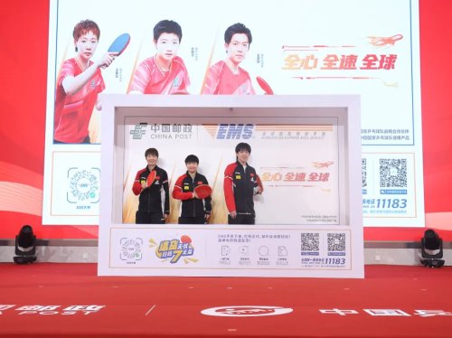 國乒世界冠軍參與中國郵政速遞物流(EMS)最新封套的發(fā)布。