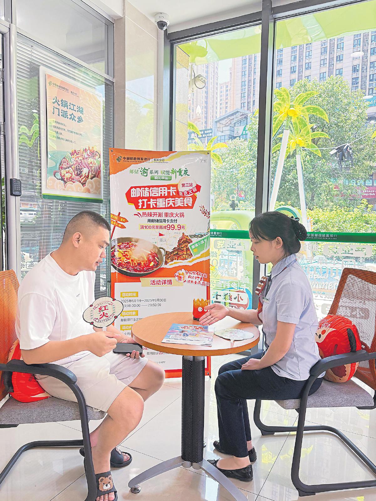 立足產(chǎn)業(yè)特色,該支行還推出了“火鍋產(chǎn)業(yè)貸”,以專(zhuān)業(yè)的金融服務(wù)為當(dāng)?shù)靥厣a(chǎn)業(yè)注入強(qiáng)勁動(dòng)力。同時(shí),該支行積極聯(lián)系網(wǎng)點(diǎn)周邊火鍋商戶,推出了信用卡立減活動(dòng)。“真的是太劃算了,我們家附近很多火鍋店都能享受郵儲(chǔ)銀行信用卡的優(yōu)惠。外地的朋友們暑期來(lái)重慶旅游,我都要帶他們嘗嘗地道的火鍋。”客戶王女士開(kāi)心地說(shuō)道。