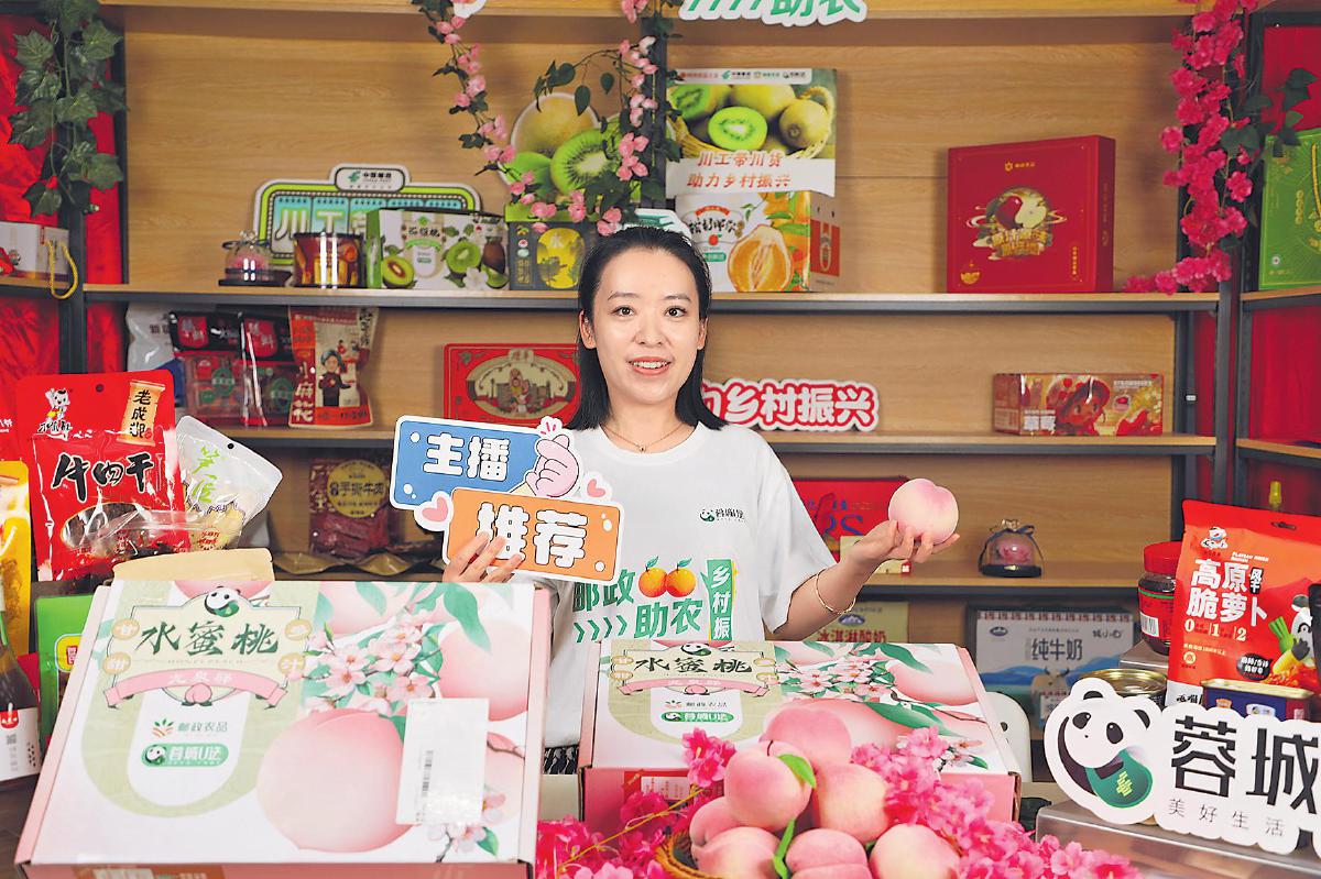“龍泉水蜜桃汁水豐沛、口感香甜,每一口都像在品嘗夏天!”6月20日,在龍泉驛區農業農村局與山泉鎮政府聯合主辦的特色農產品展銷活動中,郵政員工布展搭景,通過直播推銷龍泉水蜜桃,引來果農的圍觀,同時也收獲了大量網友的點贊與訂單。自水蜜桃大量上市以來,成都郵政加大助銷力度,頻繁參與展銷推介會,為龍泉水蜜桃傾情代言、直播帶貨。