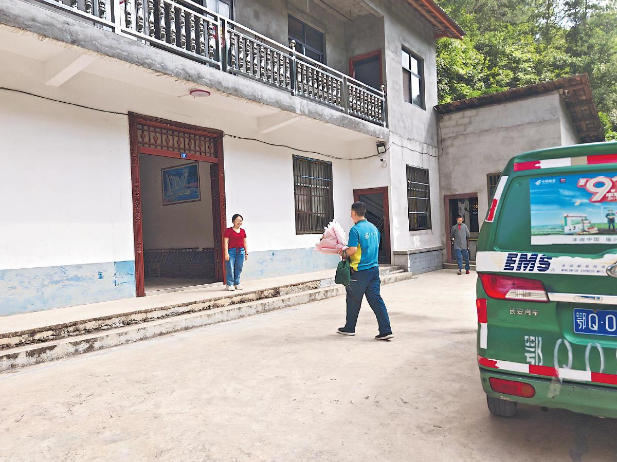 盛夏時節,湖北省恩施土家族苗族自治州青果山村,蒼翠的群山中,一輛郵車穿梭其間。行駛將近1小時,隨著郵車再次轉過一個急彎、進入一處山坳,一排盛放的木槿花旁,一座雙層民居映入眼簾。郵政投遞員張安兵踩下剎車,拿起裝著武漢大學錄取通知書的郵件,捧著一束鮮花從車上走下。
