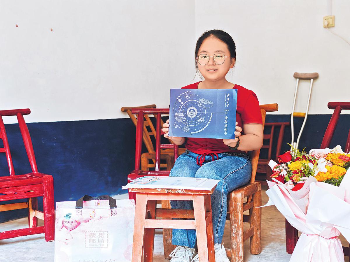 7月30日上午,一封高考錄取通知書從湖北省恩施土家族苗族自治州巴東縣清太坪郵政支局出發,抵達考生田艷青手中——這位被稱作“玻璃娃娃”的小姑娘曾被多家央媒報道,因患有罕見的成骨不全癥,12年求學路上,她經歷了7次骨折。但身體沒有禁錮住她不屈的靈魂,今年,田艷青以631分(含少數民族10分加分)成功考入武漢大學歷史學院。