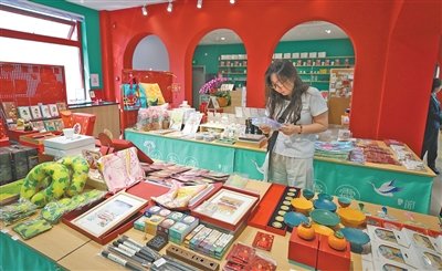 游客在北京地安門主題郵局選購文創產品。富田 攝(影像中國)