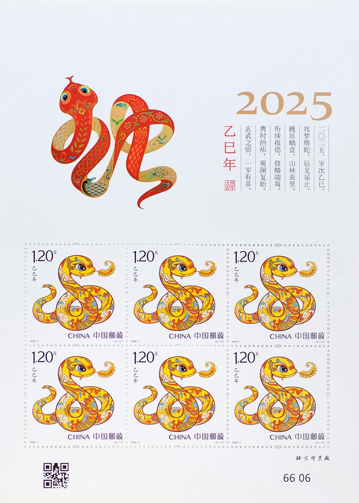 中國郵政定于2025年1月5日發(fā)行《乙巳年》特種郵票1套2枚,小本票1本。詳情如下:
