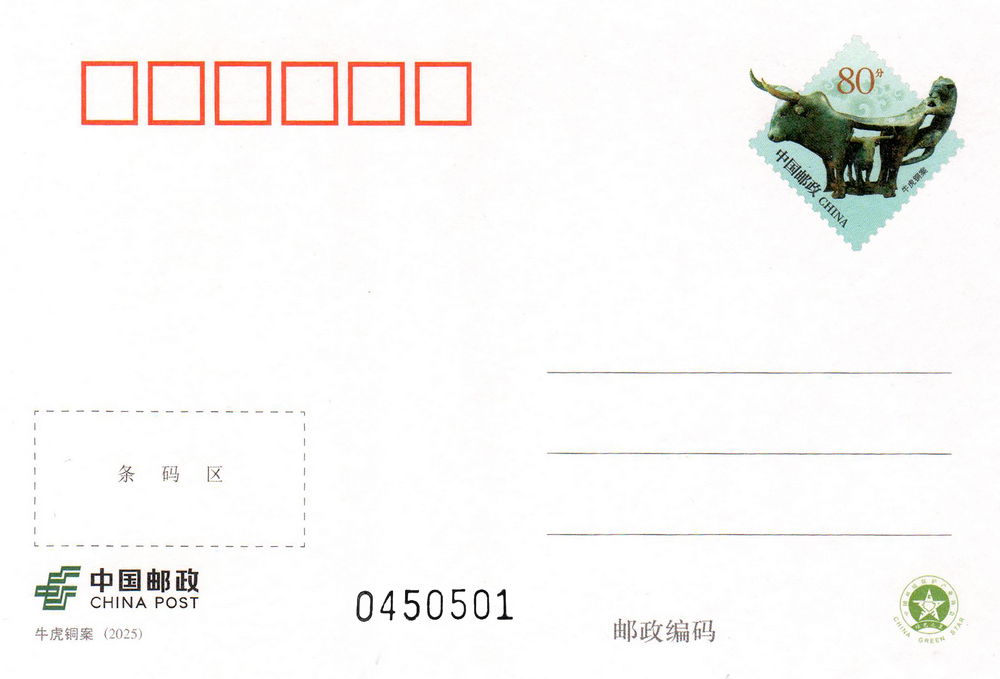 中國郵政定于2025年2月12日發行《牛虎銅案》普通郵資明信片1套1枚。詳情如下: