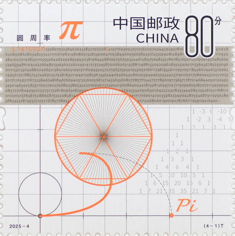中國郵政定于2025年3月14日發行《數學之美》特種郵票1套4枚,郵票圖案名稱為:圓周率、勾股定理、歐拉公式、莫比烏斯帶。全套郵票面值4.70元。郵票計劃發行數量為套票625萬套,版式二80萬版。