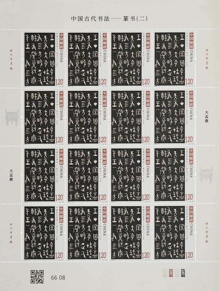 中國郵政擬定于2025年6月21日發行《中國古代書法——篆書(二)》特種郵票1套4枚,小型張1枚。郵票圖案名稱為:大盂鼎、中山王