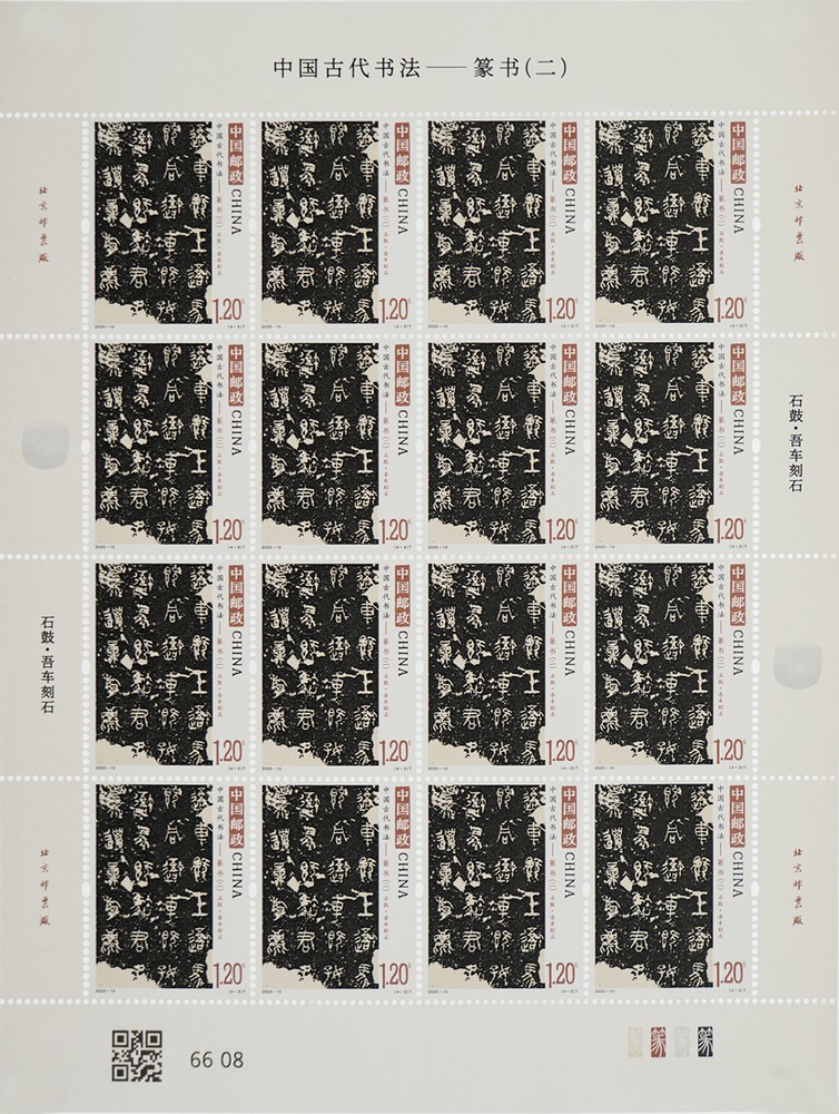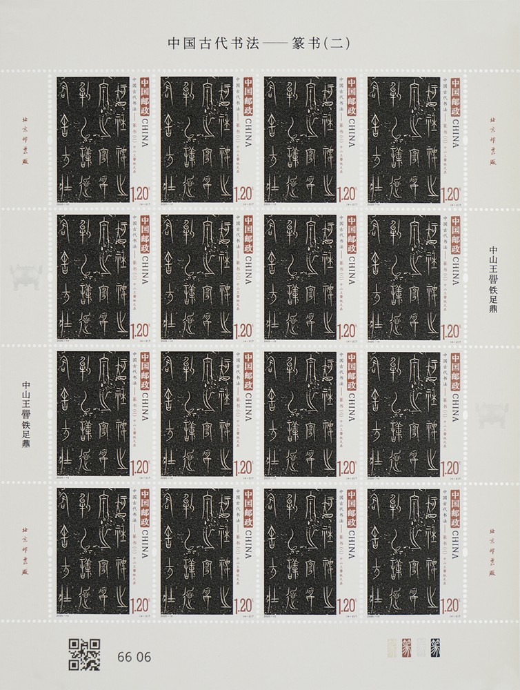 中國郵政定于2025年6月21日發行《中國古代書法——篆書(二)》特種郵票1套4枚,小型張1枚。詳情如下: