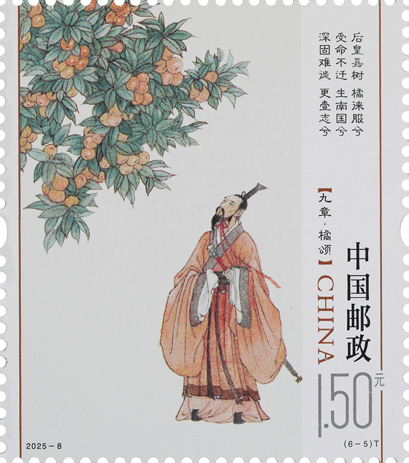 中國郵政定于2025年5月31日發(fā)行《楚辭》特種郵票1套6枚。詳情如下: